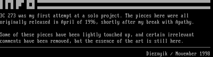 3C 273 was my first attempt at a solo project. The pieces here were all