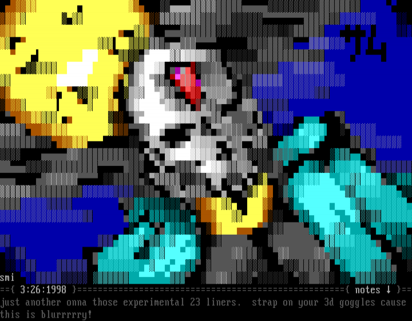 smi 3:26:1998 notes just another onna those experimental 23 liners. strap on your 3d goggles cause