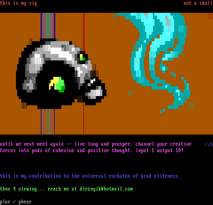 until we next meet again -- live long and prosper. channel your creative /.forces into pods of cohesive and positive thought. input 1 output 10!