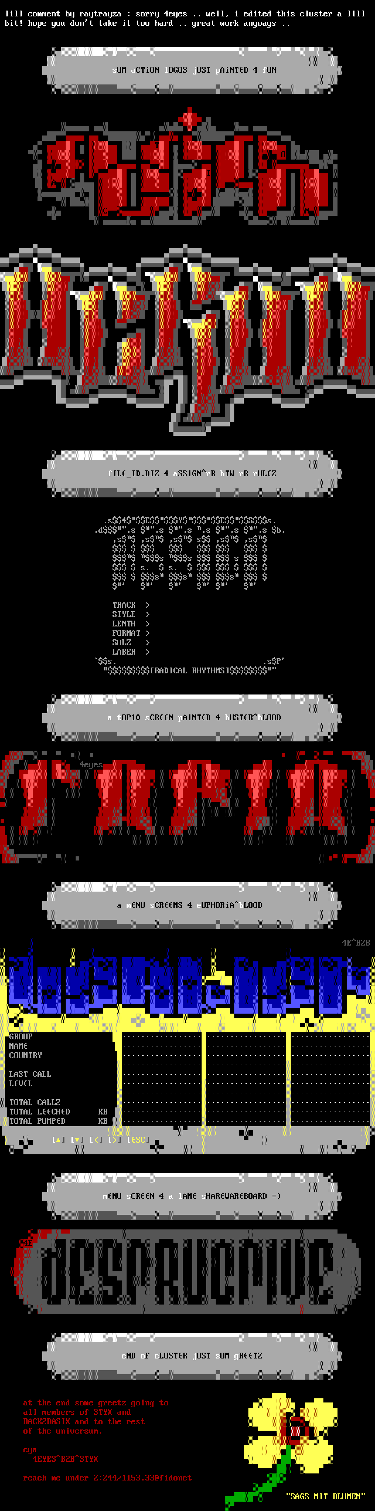 at the end some greetz going to all members of STYX and BACK2BASIX and to the rest of the universum. cya 4EYESB2BSTYX