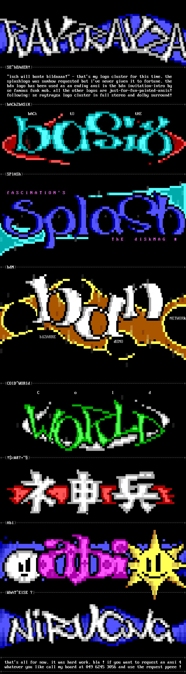 +------------------------------------------------------------------------------+ thats all for now. it was hard work. bla ! if you want to request an ansi 4