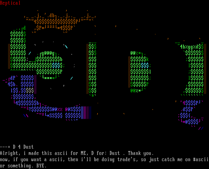 Alright, i made this ascii for ME, D for: Dust . Thank you.