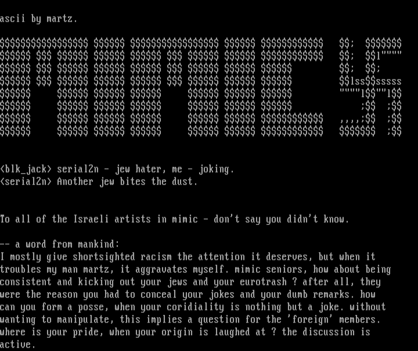 blkjack serial2n - jew hater, me - joking.