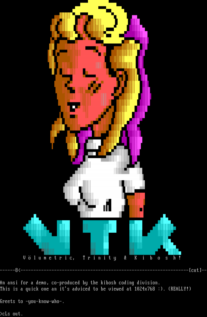 An ansi for a demo, co-produced by the kibosh coding division.