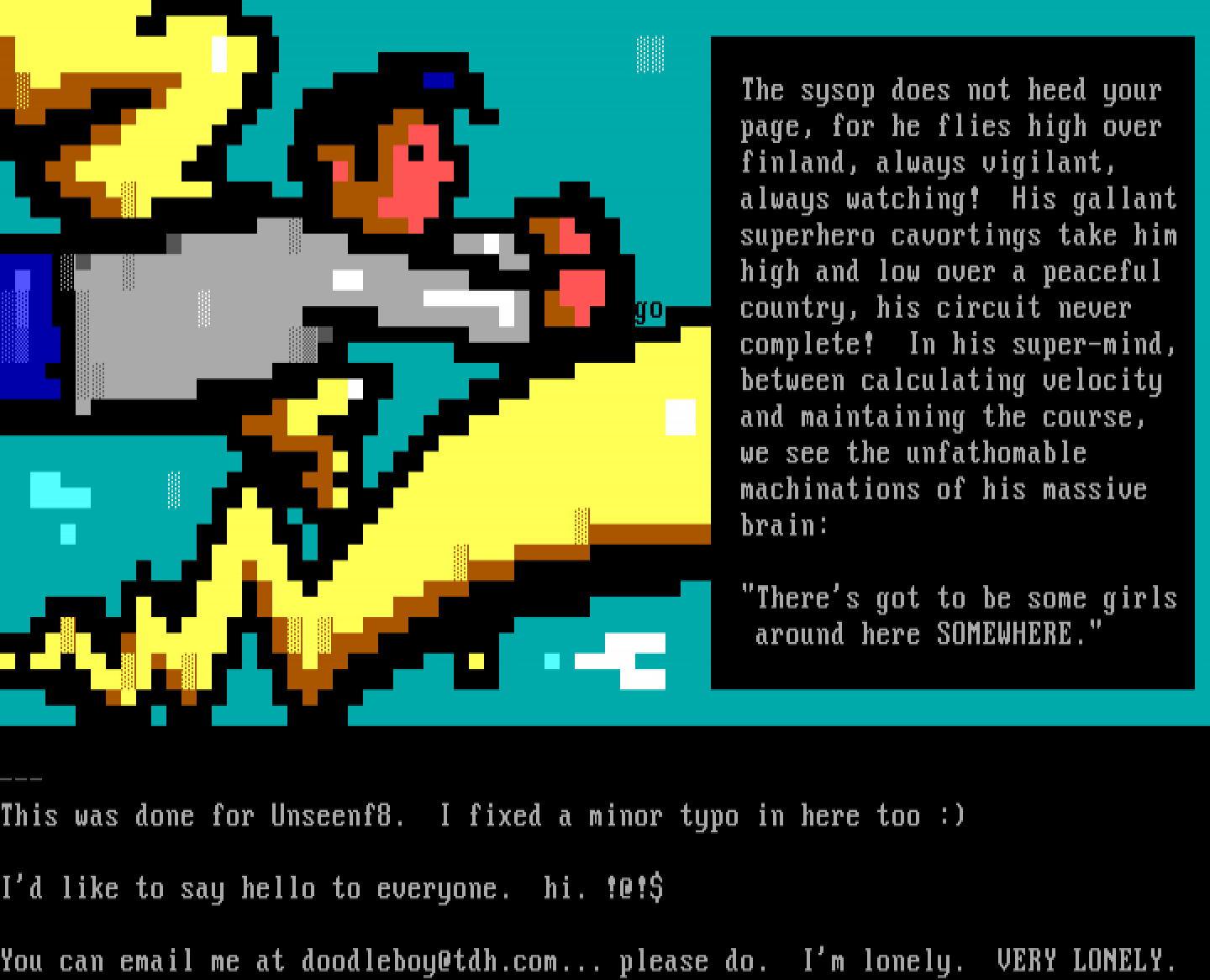 You can email me at doodleboy@tdh.com... please do. Im lonely. VER