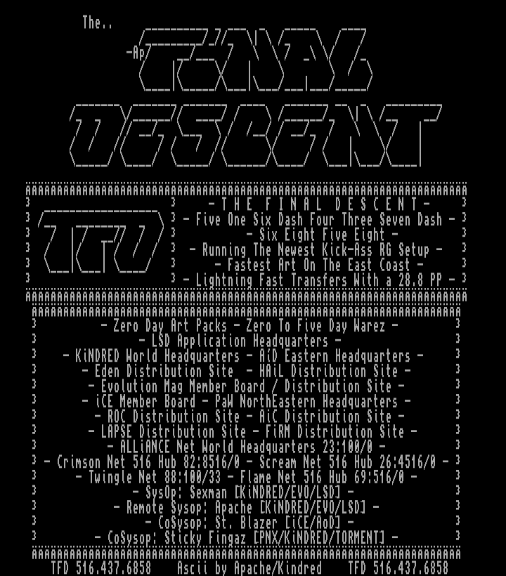 TFD 516.437.6858 Ascii by Apache/Kindred TFD 516.437.6858