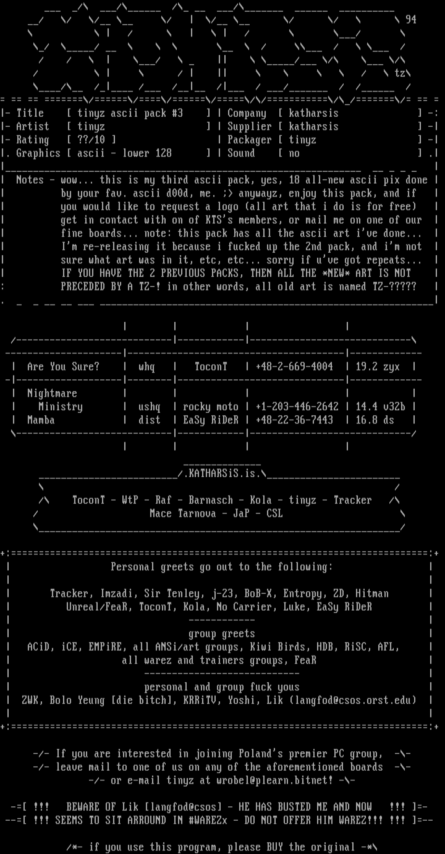 ACiD, iCE, EMPiRE, all ANSi/art groups, Kiwi Birds, HDB, RiSC, AFL,