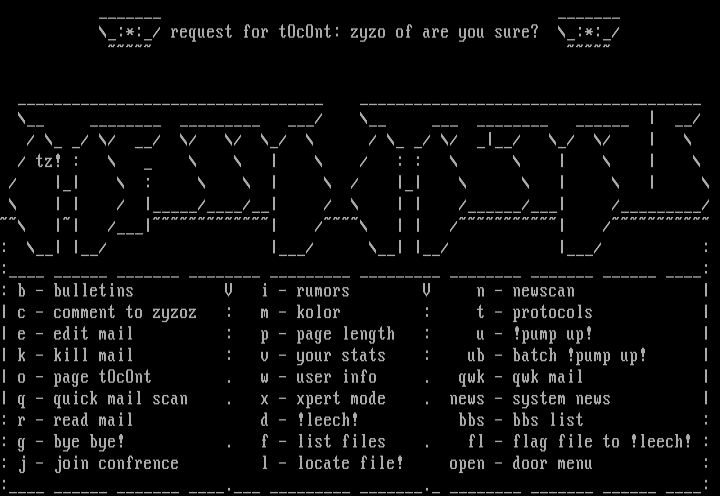 o - page tOcOnt . w - user info . qwk - qwk mail