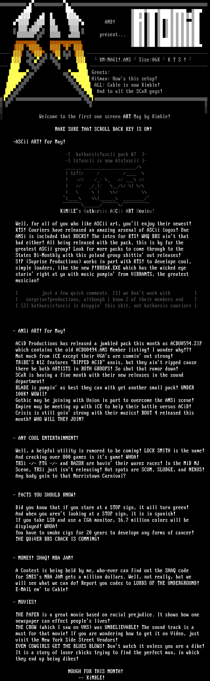 ANSi is included that ROCKS! The intro for KTS! WHQ BBS aint that