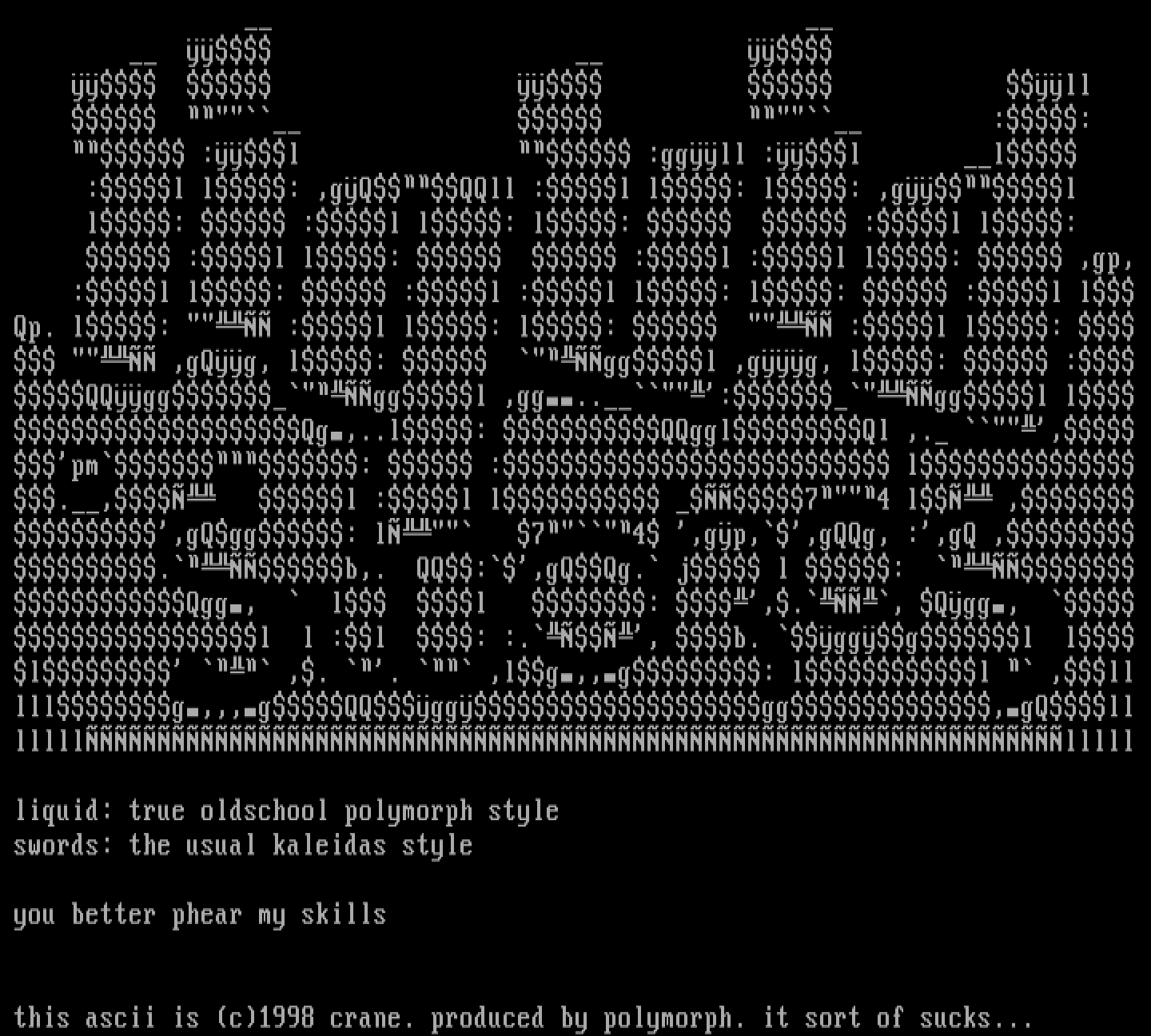 this ascii is c1998 crane. produced by polymorph. it sort of sucks...
