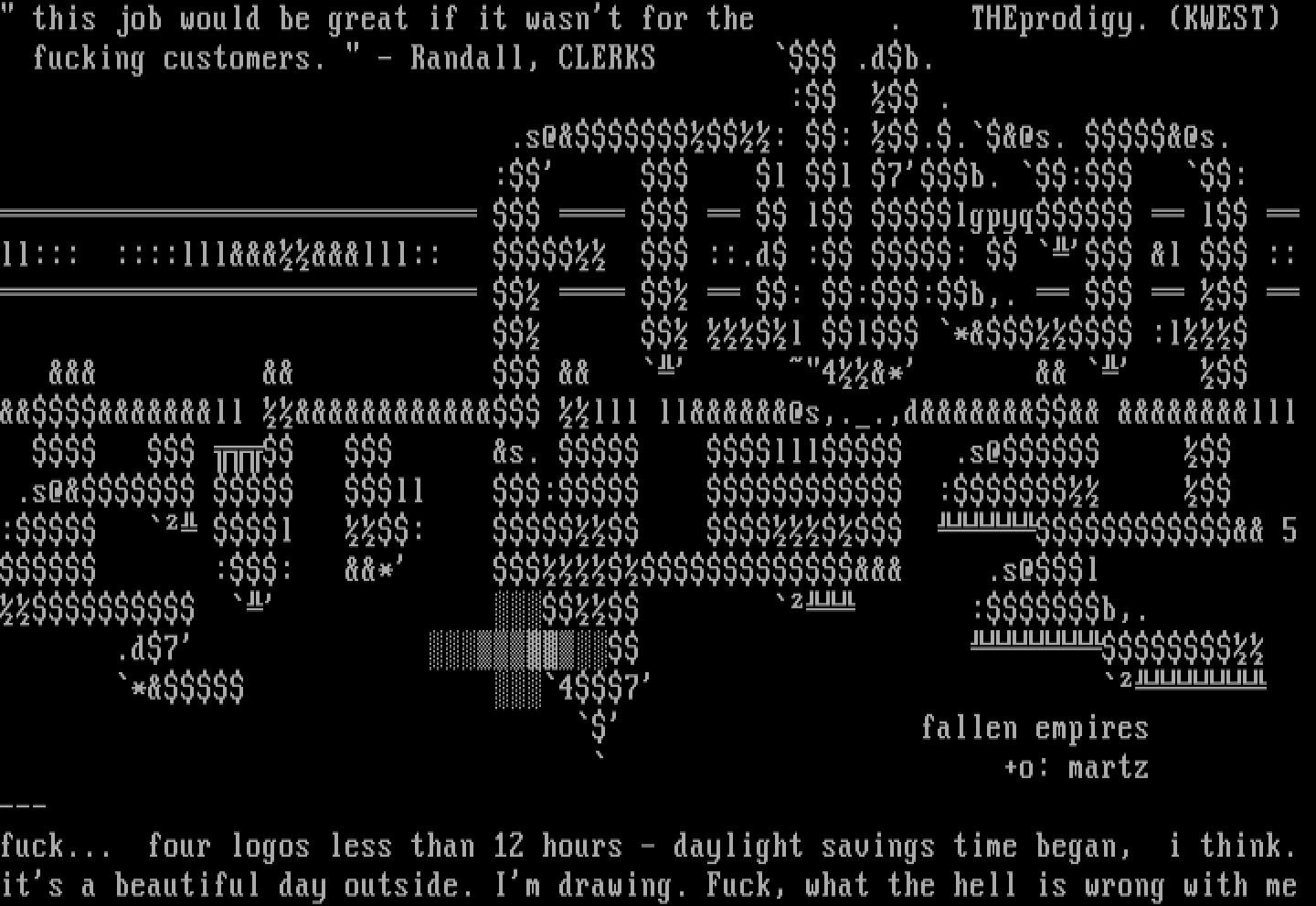 this job would be great if it wasnt for the . THEprodigy. KWEST