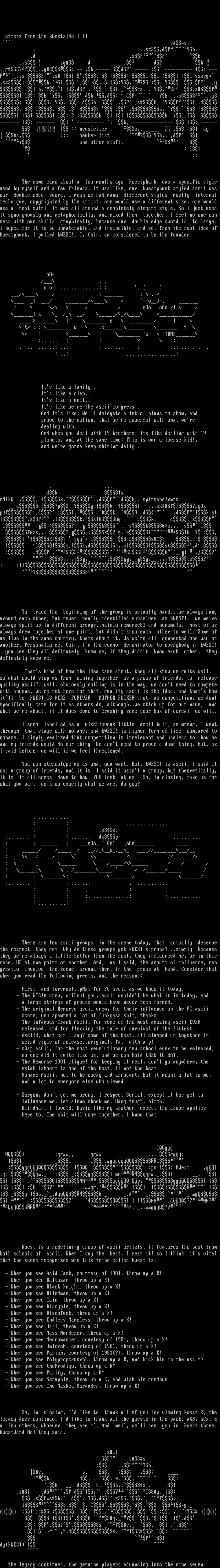 Kwest is a redefining group of ascii artists. It features the best from