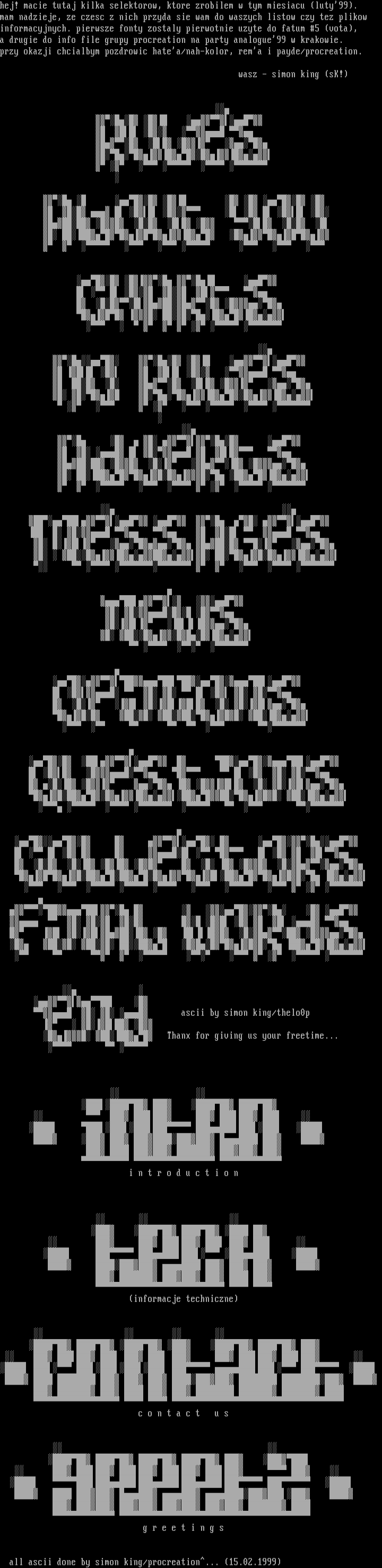 all ascii done by simon king/procreation... 15.02.1999