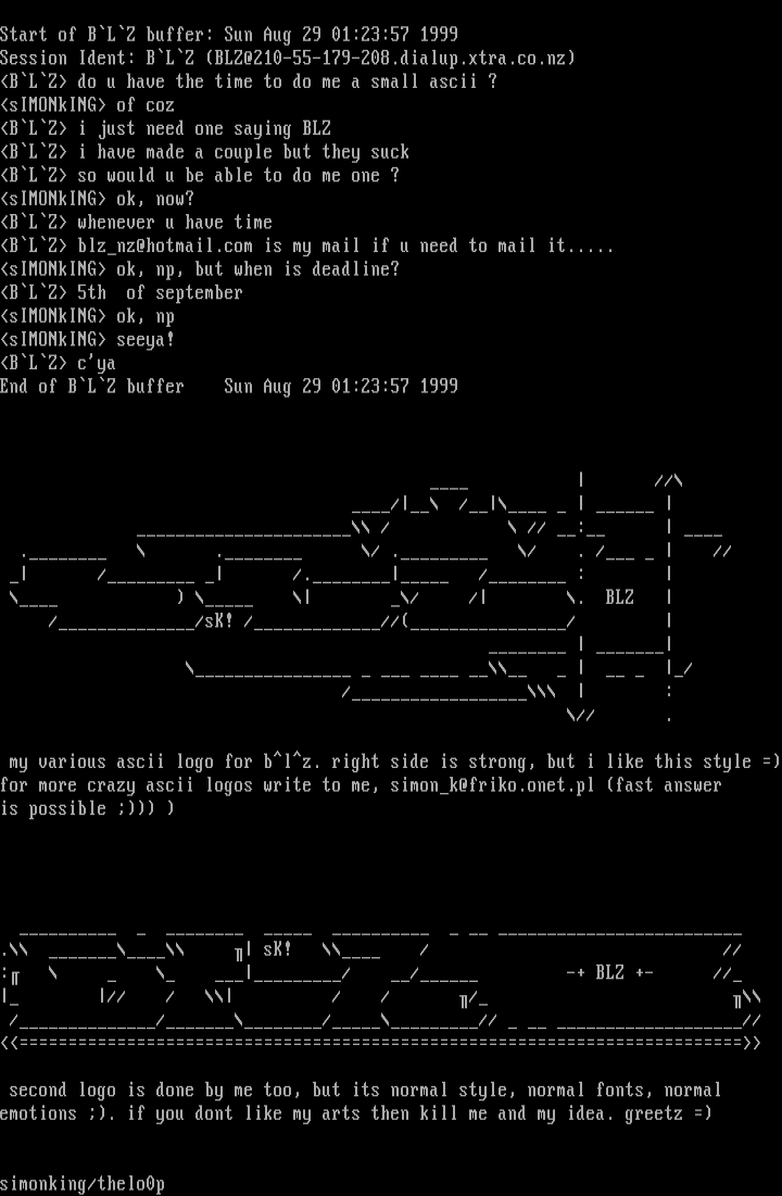 my various ascii logo for blz. right side is strong, but i like this style for more crazy ascii logos write to me, simonk@friko.onet.pl fast answer