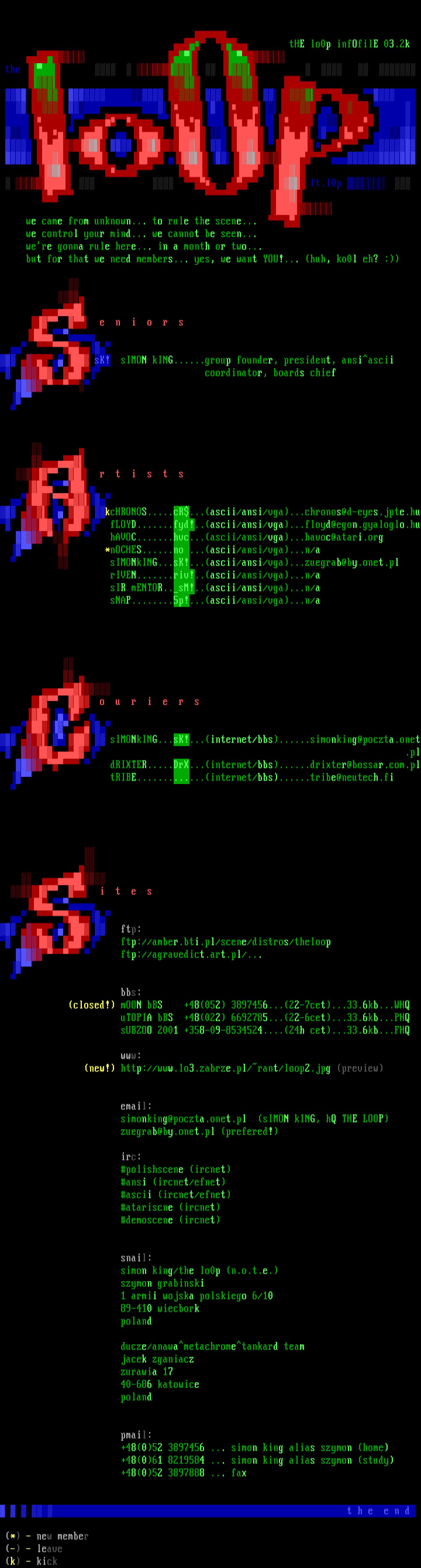 kcHRONOS.....cR...ascii/ansi/vga...chronos@d-eyes.jpte.hu fLOYD.......fyd!..ascii/ansi/vga...floyd@egon.gyaloglo.hu hAVOC.......hvc...ascii/ansi/vga...havoc@atari.org