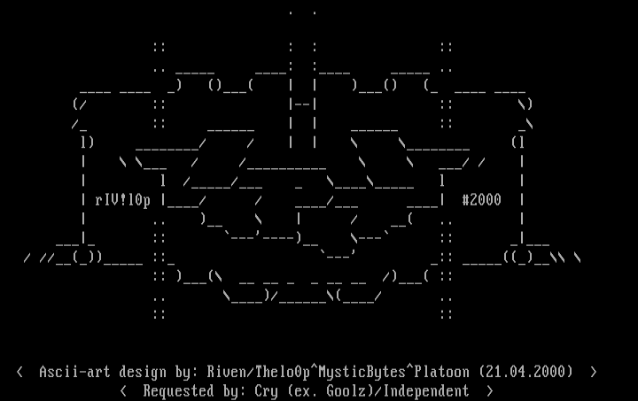 Ascii-art design by: Riven/Thelo0pMysticBytesPlatoon 21.04.2000