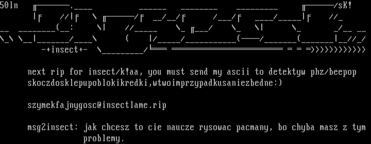next rip for insect/k!aa, you must send my ascii to detektyw phz/beepop