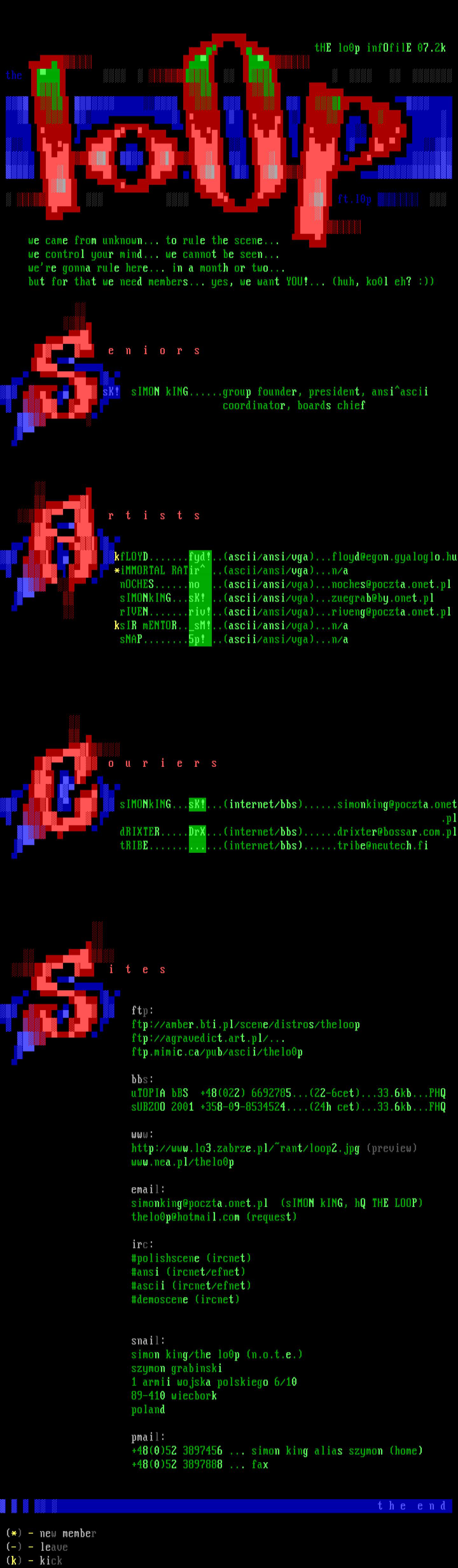 sIMONkING...sK!...internet/bbs......simonking@poczta.onet .pl dRIXTER.....DrX...internet/bbs......drixter@bossar.com.pl tRIBE.............internet/bbs......tribe@neutech.fi