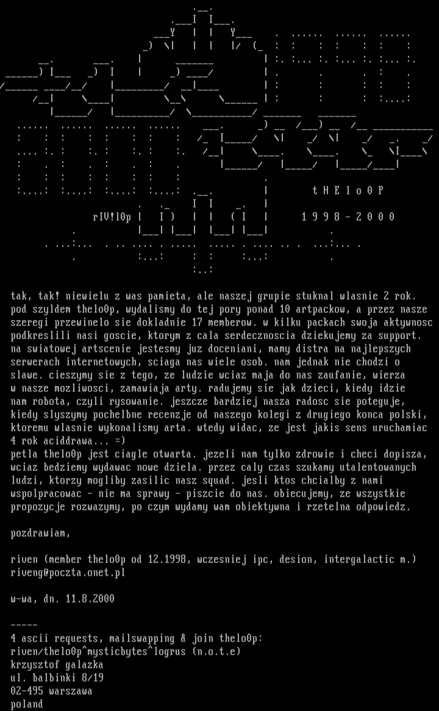 pod szyldem thelo0p, wydalismy do tej pory ponad 10 artpackow, a przez nasze