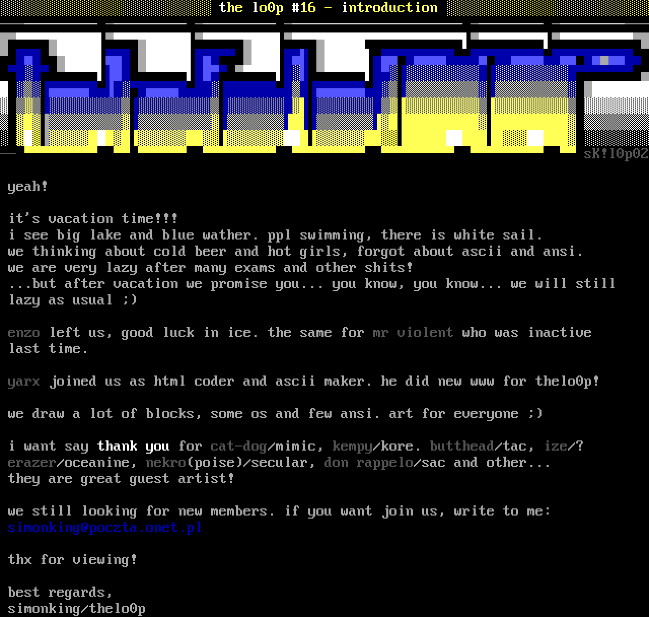 yarx joined us as html coder and ascii maker. he did new www for thelo0p!
