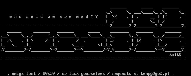 . amiga font / 80x30 / or fuck yourselves / requests at kempy@go2.pl .