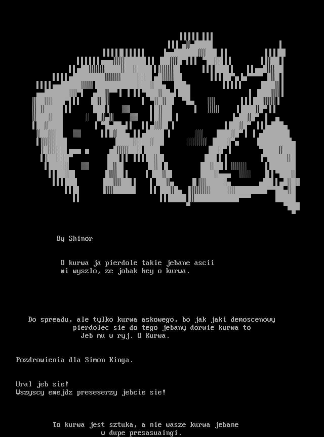 O kurwa ja pierdole takie jebane ascii