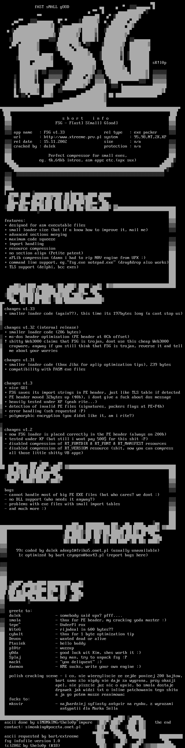 app name : FSG v1.33 rel type : exe packer