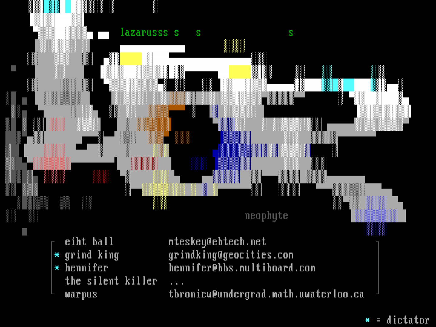 lazarusss s s s neophyte eiht ball mteskey@ebtech.net