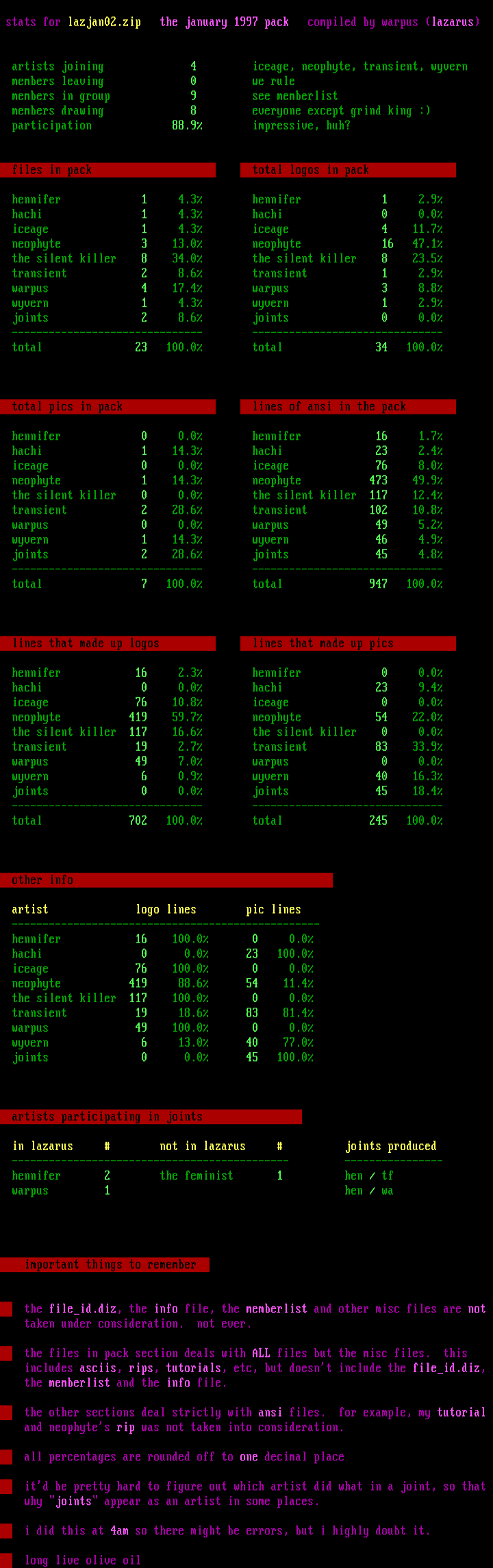 stats for lazjan02.zip the january 1997 pack compiled by warpus lazarus