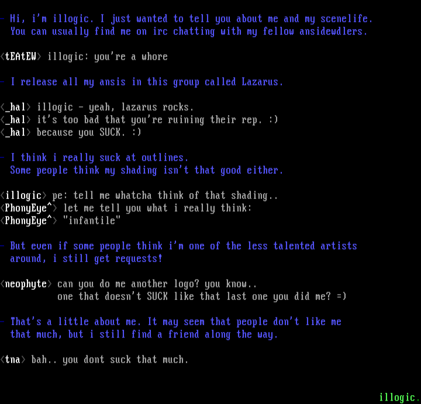 - Hi, im illogic. I just wanted to tell you about me and my scenelife.