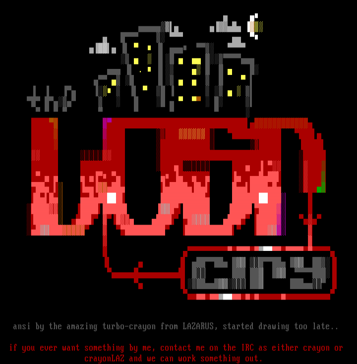 ansi by the amazing turbo-crayon from LAZARUS, started drawing too late..