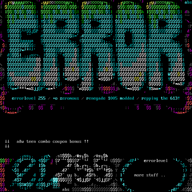 :: : l: : dk ll :l :ll l j l lW : W Y7 *SS4 *SS Y Y ., j ,. ,. ,. .d. 4 , *SP j4.**SjjP** / P Yjb *P YS* Ss. ,dQPj7 ** 4b errorlevel 255 / +o zeromous / renegade 1005 modded / repping the 613! :l j4b,., :: :: /,..,P ** **