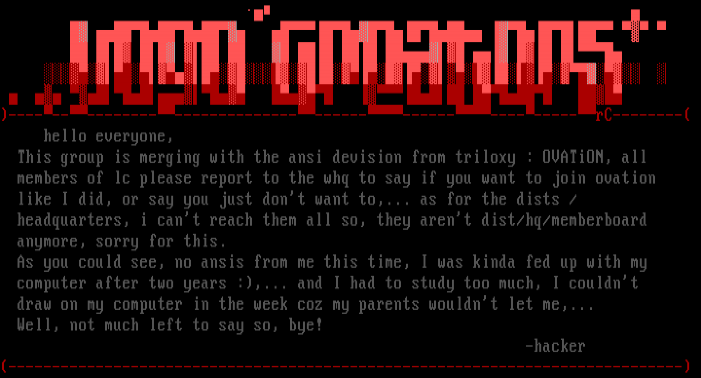 This group is merging with the ansi devision from triloxy : OVATiON, all