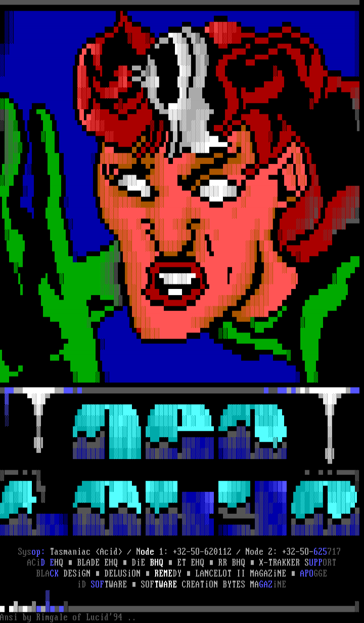 Sysop: Tasmaniac Acid / Node 1: +32-5O-620112 / Node 2: +32-5O-625717