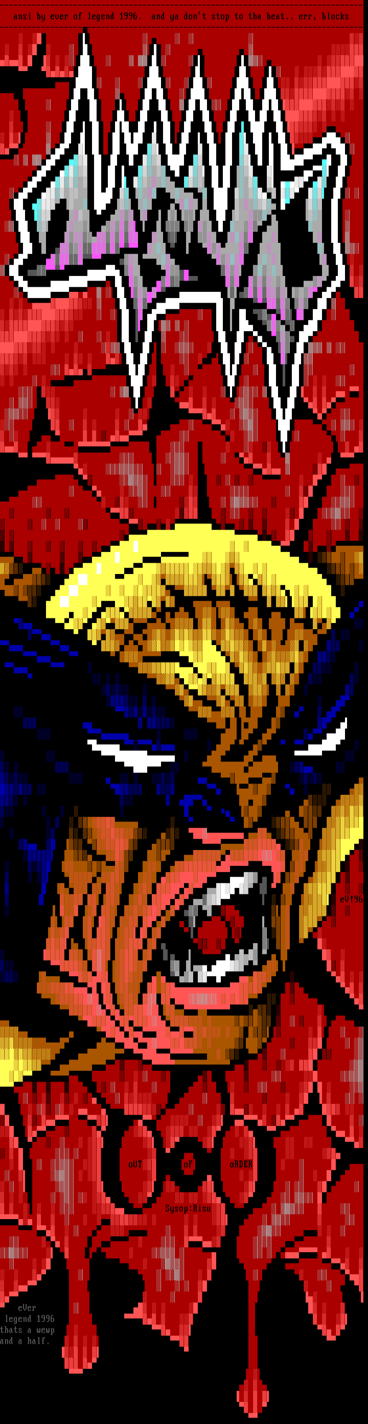 ansi by ever of legend 1996. and ya dont stop to thabeat.. err, blocks