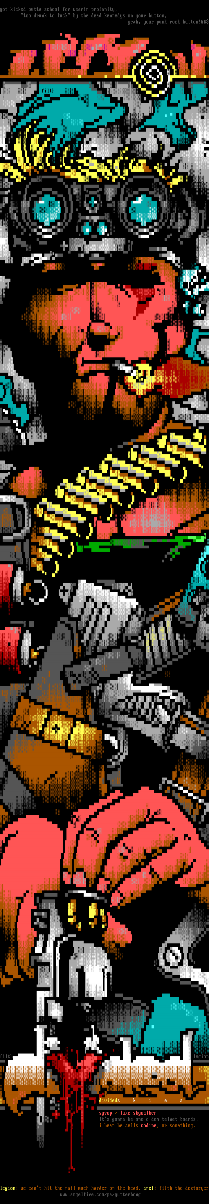 legion: we cant hit the nail much harder on the head. ansi: filth the destoryer www.angelfire.com/pa/gutterbong