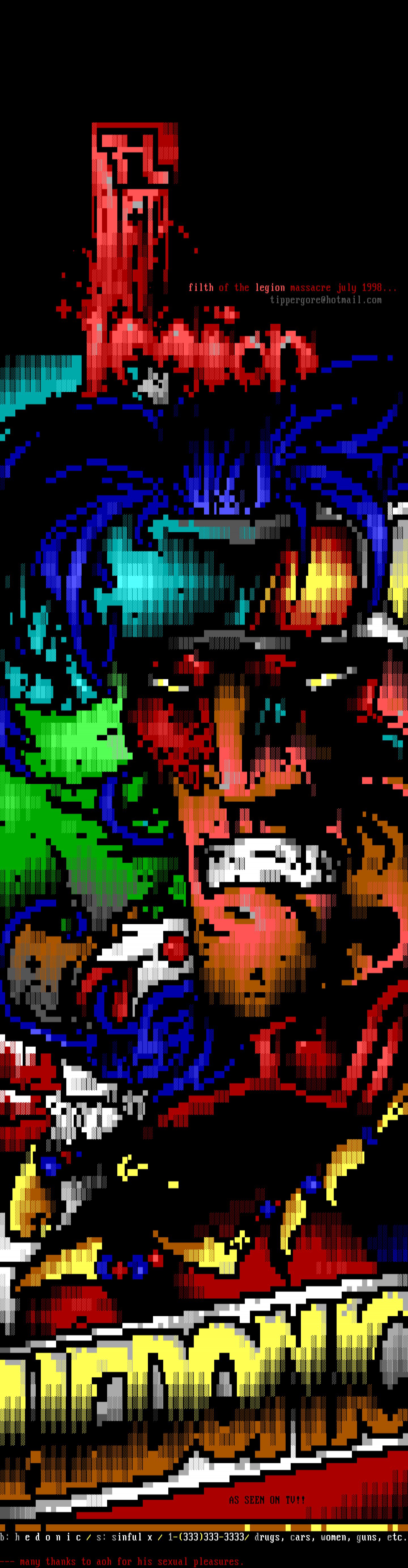AS SEEN ON TV!! b: h e d o n i c / s: sinful x / 1-333333-3333/ drugs, cars, women, guns, etc.
