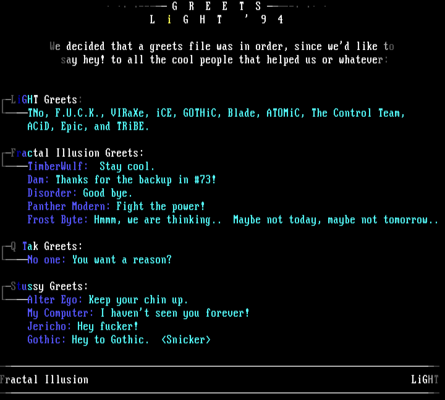 TNo, F.U.C.K., VIRaXe, iCE, GOTHiC, Blade, ATOMi