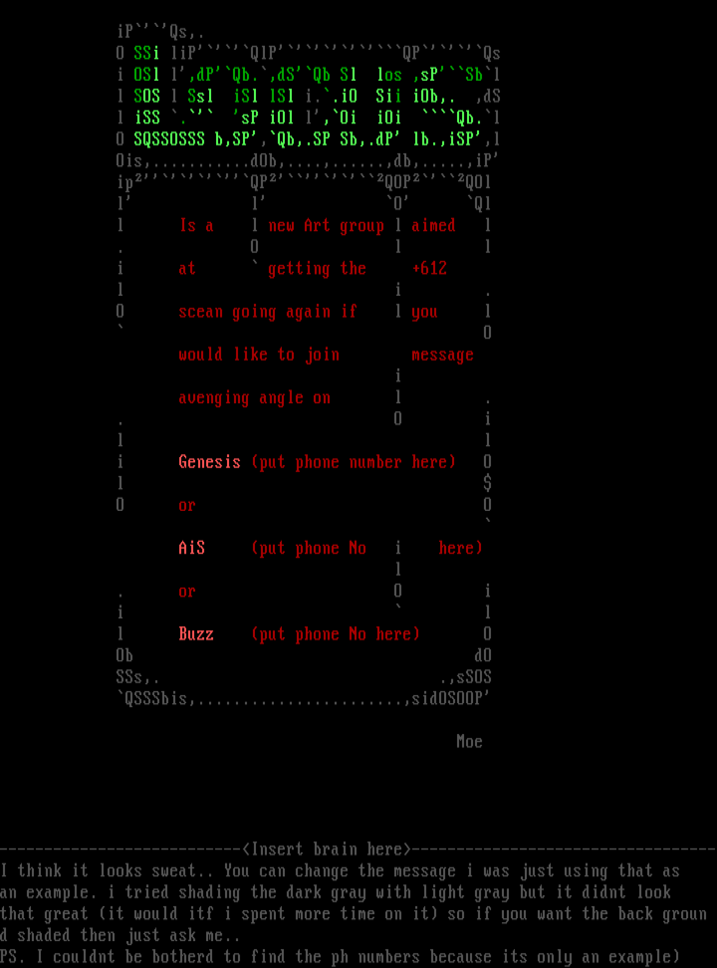 ---------------------------Insert brain here----------------------------------I think it looks sweat.. You can change the message i was just using that as