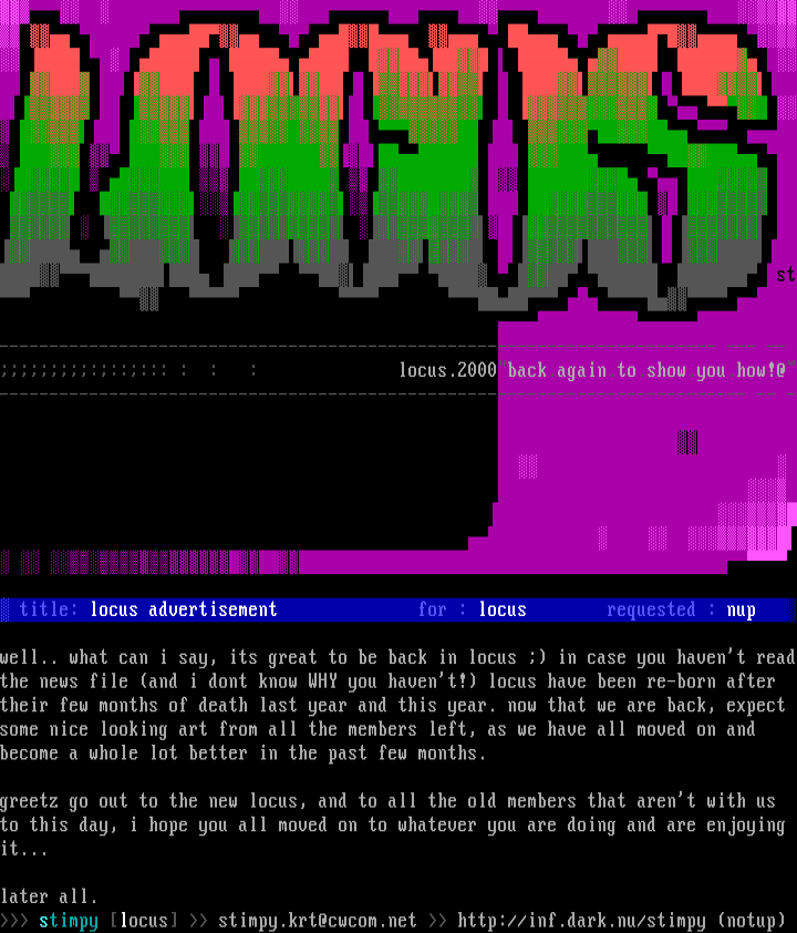 st greetz.to.all.in.locus.and.all.from.the.old.locus ------------------------------------------------------------------------ --- -- :::::: : : : locus.2000back.again.to.show.you.how!@--------------------------------------------------------------------------- -- -