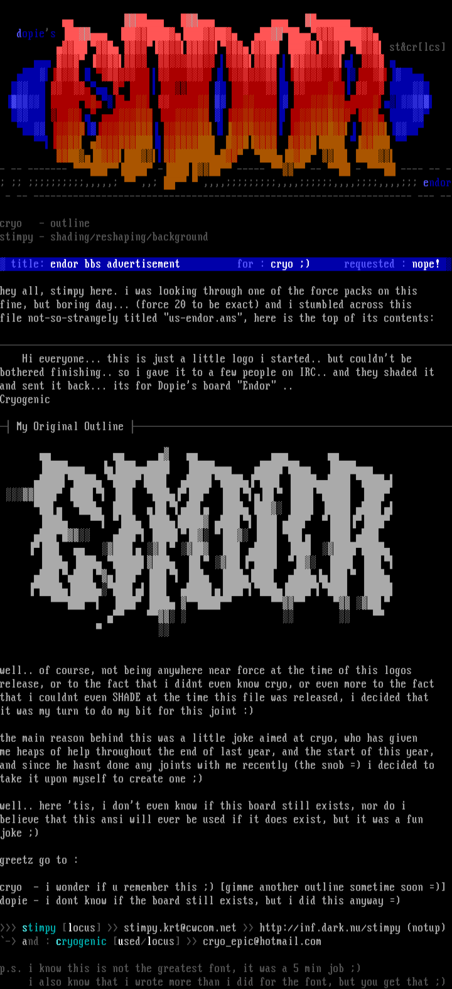 title: endor bbs advertisement for : cryo requested : nope!