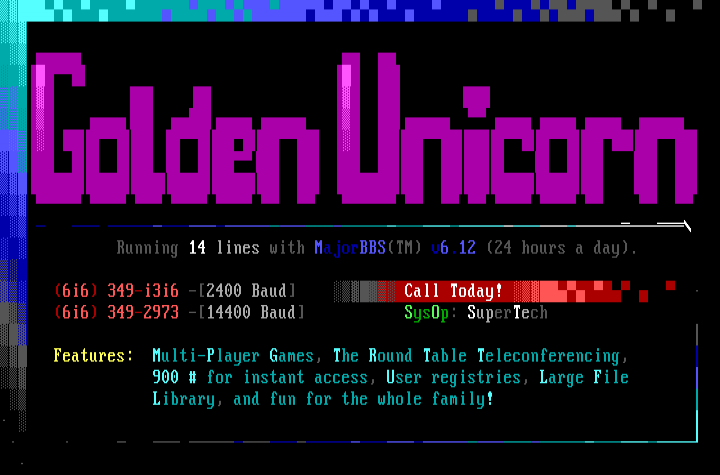 Running 14 lines with MajorBBSTM v6.12 24 hours a day.