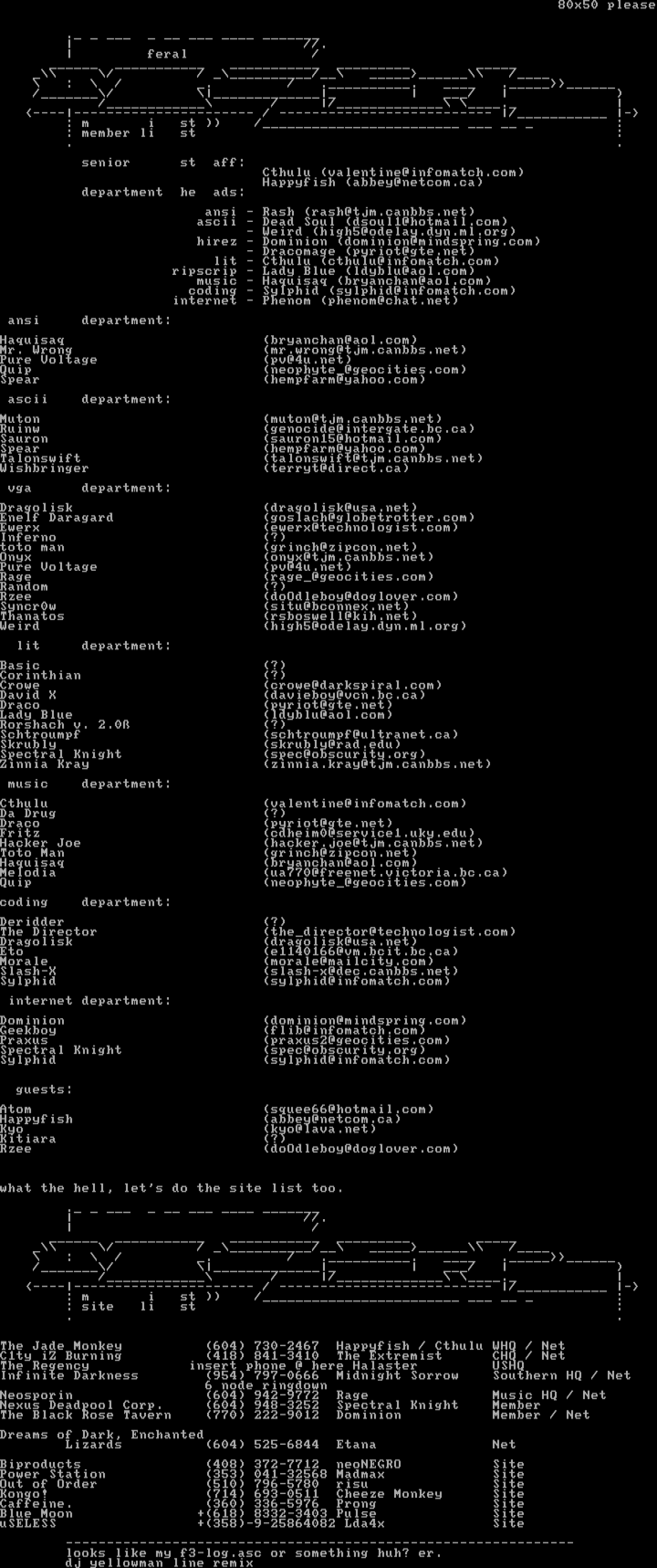 ascii department: