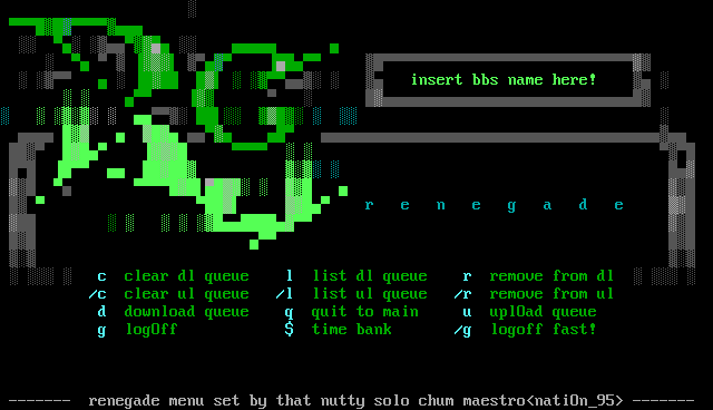 ------- renegade menu set by that nutty solo chum maestronatiO
