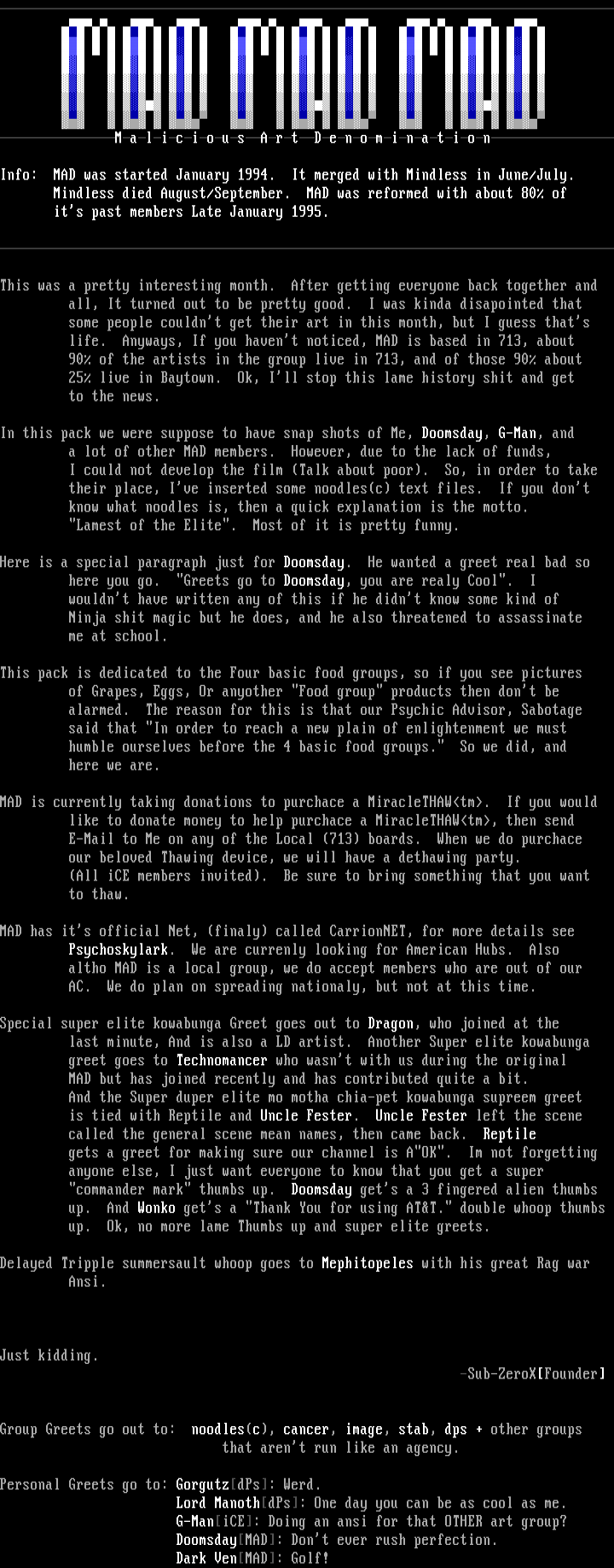 MAD has its official Net, finaly called CarrionNET, for more details se