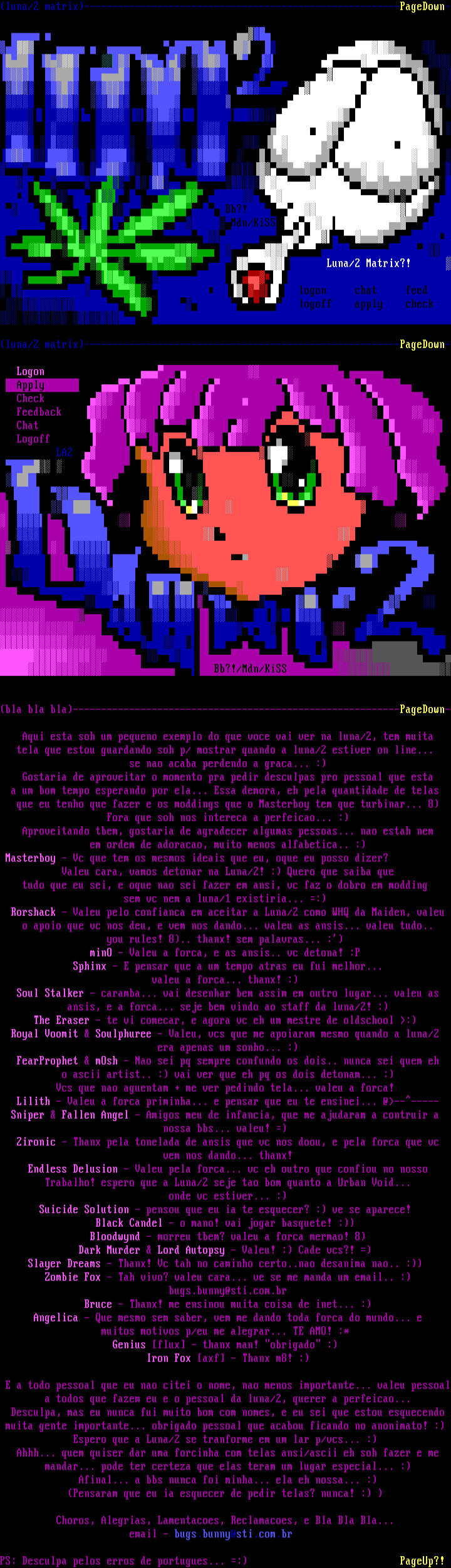Ahhh... quem quiser dar uma forcinha com telas ansi/ascii eh