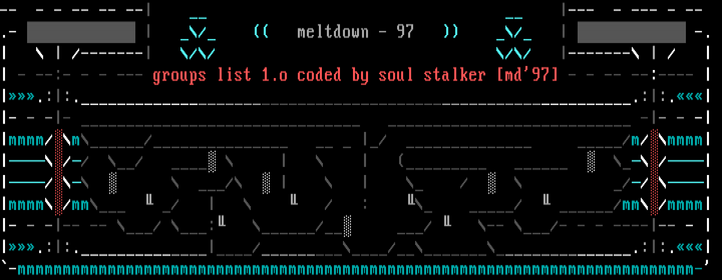 - --:- - - --- groups list 1.o coded by soul stalker md97 - - -- --:----