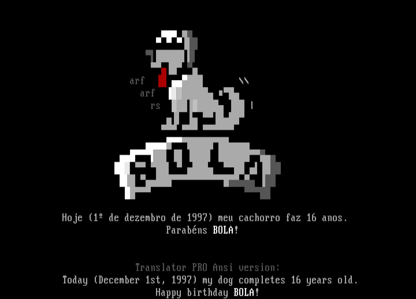 Hoje 1 de dezembro de 1997 meu cachorro faz 16 anos.