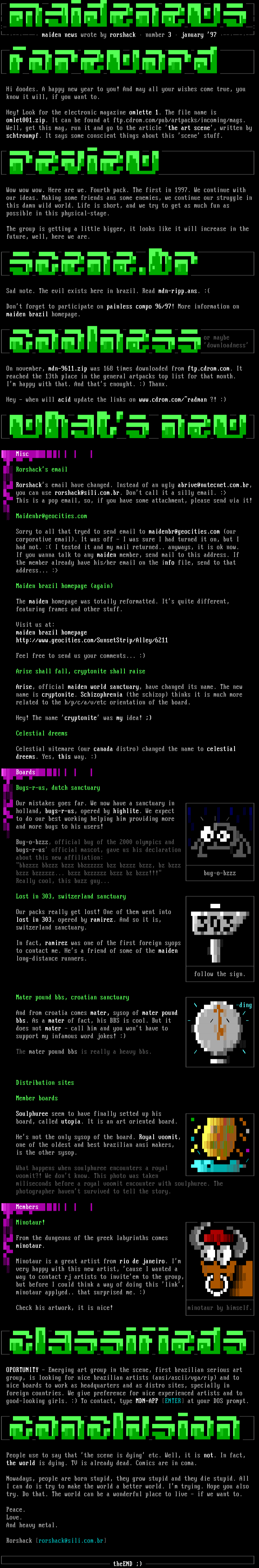 ------ maiden news wrote by rorshack number 3 january 97 -----