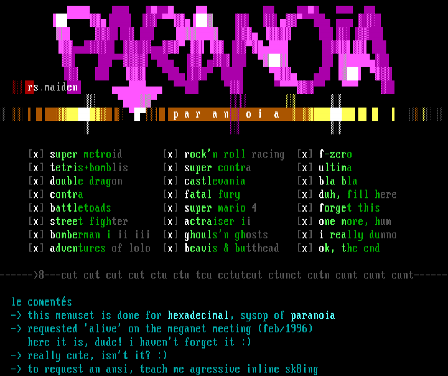 - requested alive on the meganet meeting feb/1996